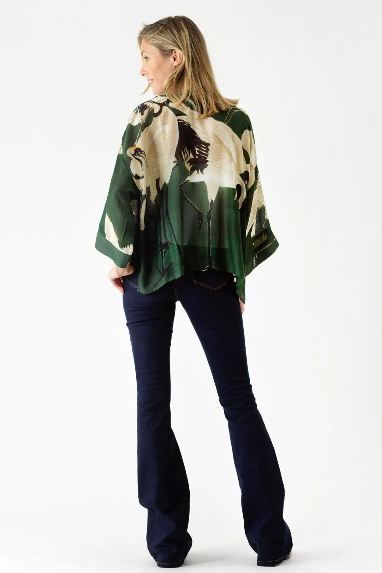 Storks And Cranes Have Been A Major Art Deco Trend In Both Fashion And Interiors And This Stork Forest Green Kimono Is Perfect For Anyone Looking For Something Chic, Stylish And In Vogue!