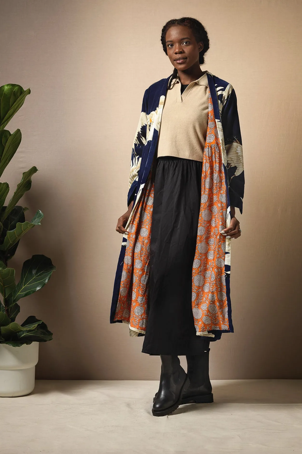 This Luxury Velvet Duster Is Made From 100% Organic Cotton And Lined In Exquisitely Hand Screen Printed Sustainable Fabric. It Oozes Luxury And Makes The Perfect Statement Jacket For Covering Up On Those Cooler Days Or Evenings.