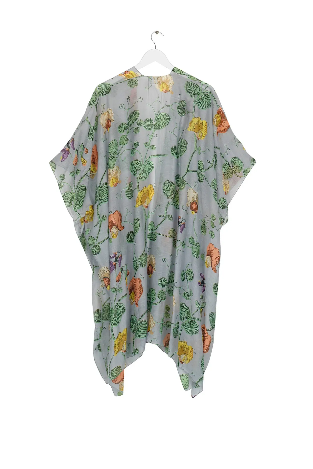 This Happy Floral Print Features Much-Loved Sweet Peas, Twisting And Weaving Across A Cornflower Blue Background. This Print Has A Vintage Air To It, With Its Old Cartoon-Like Drawings Of These Beautiful Flowers.
