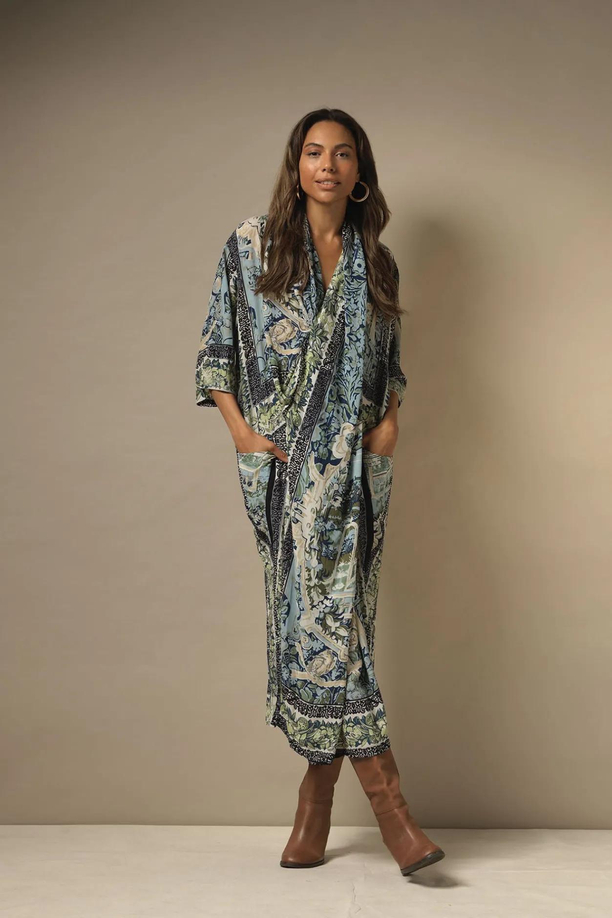 This Cowl Neck, V-Line Dress Features A Pin Tuck Front, And Pockets And Can Be Styled Loose Or Worn With A Belt To Create A Beautiful Silhouette.