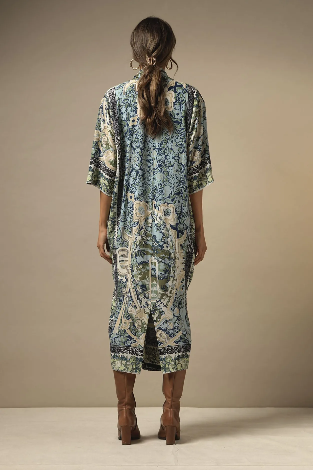 Inspired By Antique Flemish Tapestries, This Print Features Beautiful Garden Scenes In Sea Greens And Blues.