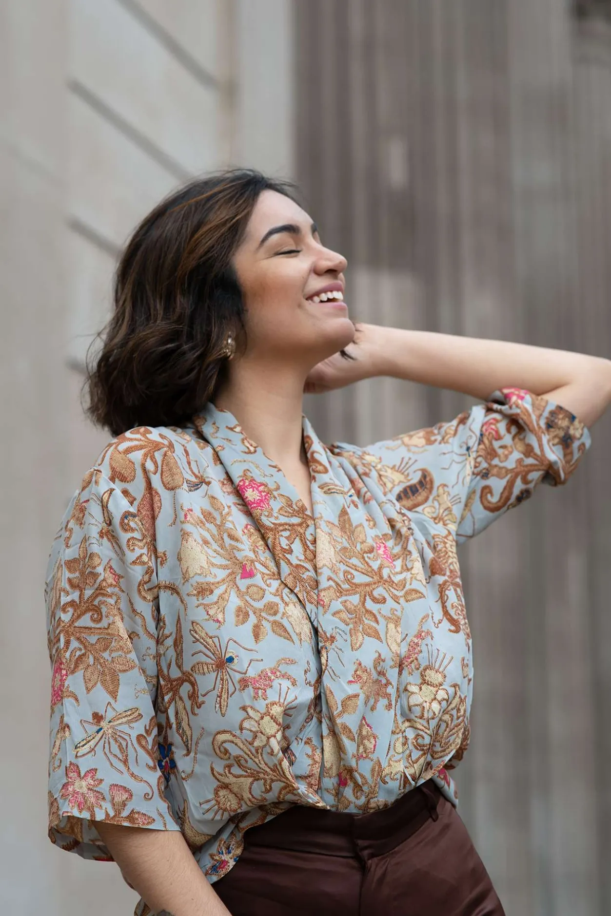 Tudor Rose Is A Fun Print Based On Collections Of Antique Tudor Rose Embroidery And Jacobean Crewelwork. You Will Find Stylised Florals, Discretely Placed Insects And Leaping Hares Among Just Some Of The Delightful Motifs Which Adorn This Garment!